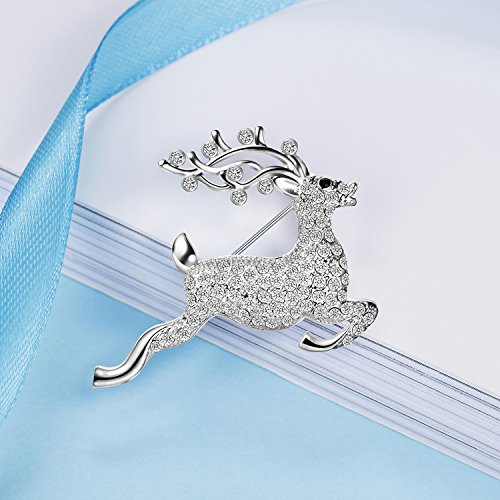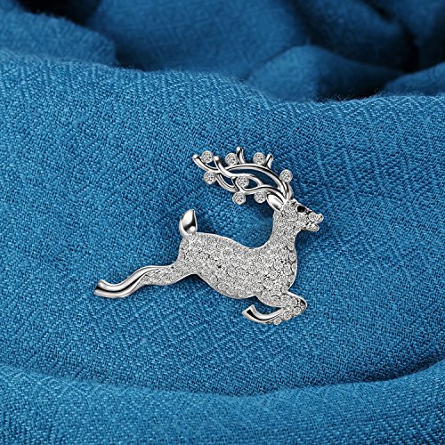 Murtoo, spilla a forma di renna di Natale in argento decorata con micro cristalli Swarovski e placcata in oro bianco