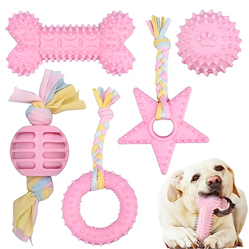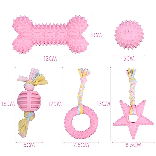 MUSEDAY Set di Giocattoli per Cani Masticatori, 5 Pezzi Giocattoli per Dentizione per Cani Cuccioli Piccoli e Media Taglia(Rosa)