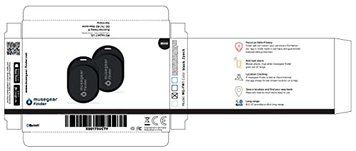 Musegear Keyfinder Mini con Bluetooth App I Keyfinder ad Alta Voce per Cellulare - Nero 2-Pack I GPS Tracking/Pairing I Trovare Le Chiavi