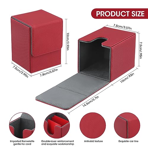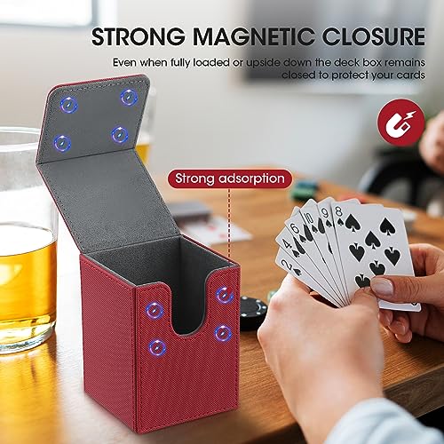 MuseMusy Scatole Per Carte Da Gioco Scatole Per Carte Da Gioco Da Collezione Adatto Per Oltre 100 Carte, Deck Box Per Carte Magic The Gathering, Magnetic Flip Deck Box Compatibile Con MTG TCG (Rosso)