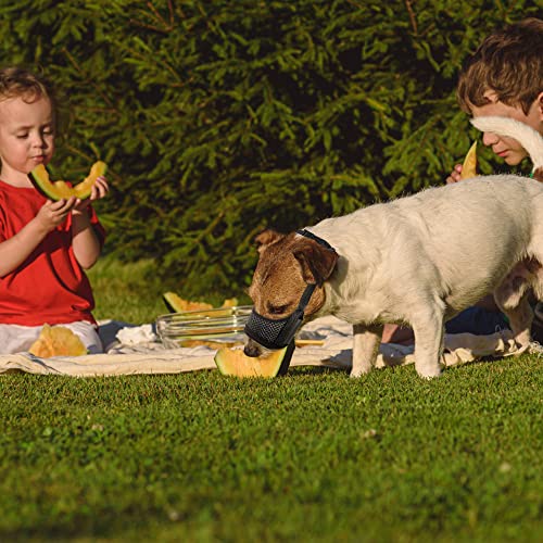 Museruola Cane Museruola Antiabbaio con Anello Regolabile in Morbida Rete Traspirante Impedisce di Masticare, Rosicchiare e Mordere Taglia Grande Media Taglia Piccola (Nero)