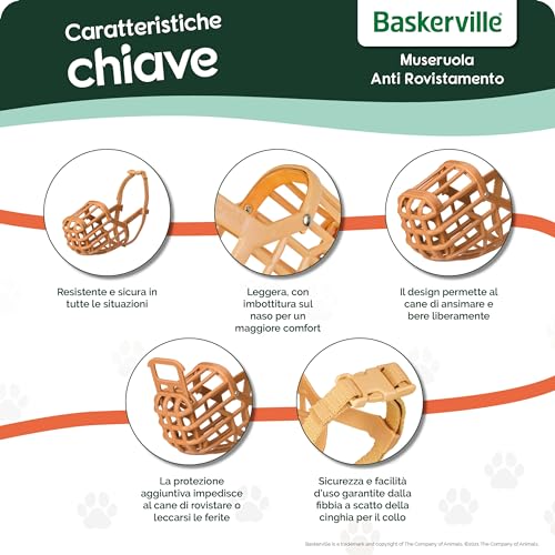 CANE PUÒ ANSIMARE E BERE: il DESIGN ETICO della museruola Baskerville Anti Rovistamento permette al cane di ansimare (se accaldato/stressato) e bere. ADATTA A PASSEGGIATE GIORNALIERE e lunghi periodi.