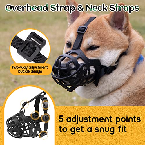FACILE da REGOLARE, INDOSSARE e TOGLIERE: Questa museruola ha cinque zone di regolazione e un design con fibbia a due vie che, può essere completamente regolato per adattarsi al viso del cane,facile da indossare e da togliere.