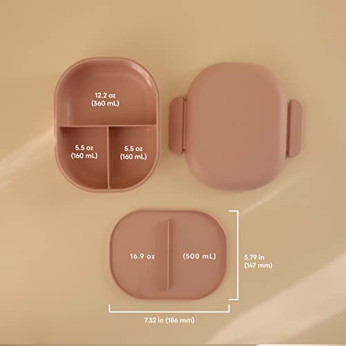 Mushie Lunch Box Porta Merenda bambini Scuola Schiscetta Pranzo Portapranzo | Divisori e scomparti con coperchi chiudibili a chiave | Con posate forchetta e cucchiaio (Blush)
