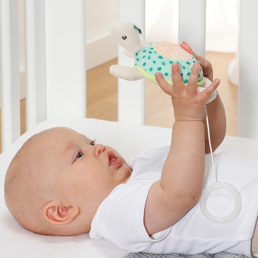 Il simpatico mini carillon S child toad della collezione Sea Children è un ottimo compagno per i bambini fin dalla nascita e conforta, calma e trasmette sicurezza con la sua dolce melodia da ninna nanna Schlafe mein Prinzchen (Mozarts Wiegenlied). Con le sue dimensioni pratiche e i suoi colori tenui, il piccolo abitante del mare si adatta perfettamente ovunque. Coccole, sogni e amore: Il compagno di sonno dalle profondità dei mari è sicuro di diventare rapidamente il primo amico d'infanzia del bambino. Dettagli del prodotto: Dimensioni (lunghezza): 14 cm Meccanismo musicale rimovibile Melodia: Dormi mio piccolo principe (ninnananna di Mozart) Tempo di riproduzione: circa 1,5 - 2 minuti Istruzioni per la cura: Lavabile a 30°C Materiale: velour, tessuto stampato Imbottitura: 100% poliestere Età: da 0 mesi Attenzione Rimuovere il carillon prima del lavaggio. Tenere il carillon fuori dalla portata di neonati e bambini piccoli. La cerniera dovrebbe essere utilizzata solo da adulti. Il giocattolo può essere dato al bambino solo con la cerniera ben chiusa.