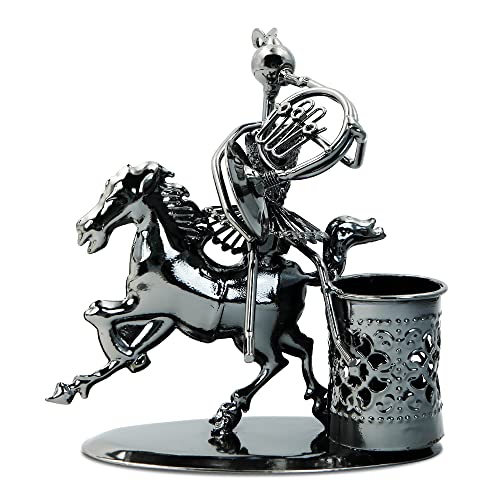 Music Man Strumento Performer Penna Contenitore Holder, Cavallo Corno Musicista Figura Metallo Matita Tazza Pot per Home Office Desktop Storage Accessori Regalo di Compleanno (Corno Francese A048-7)