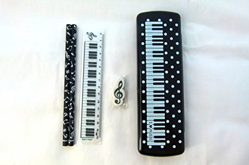 Musica a tema bianco Spots tasti di pianoforte plastica nera cassa di matita PVC con matite, righello e Gomma set di cancelleria