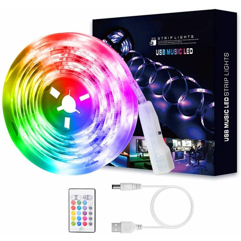 ✔【Striscia luminosa a LED USB】 Microfono MEMS integrato, musica in tempo reale e rilevamento del volume suono ambientale. Le strisce luminose a LED sincronizzate con la musica contengono una varietà di strisce luminose a LED. di modalità ritmiche musicali. ✔ 【Telecomando IR a 24 tasti】 Telecomando a infrarossi. I colori e le modalità cambiano con il pulsante di commutazione. ✔【Multi-modalità】 Più di 20+ modalità multiple mescolate con modalità luci automatiche, luce integrata design della striscia e del controller, dimensioni ultra ridotte per una facile installazione. ✔ 【Dai vita alla tua casa. musica】 Con il microfono ad alta sensibilità;