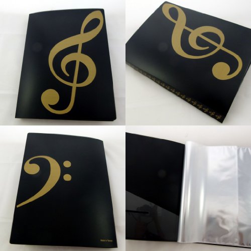 Musica a tema 20 tasche in plastica Cartella di visualizzazione Copertina Morbida - Copertina Black Gold Treble Clef design