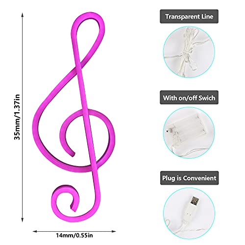 Luce al neon, nota musicale, a forma di LED, decorazione da parete, creativa, luce notturna a LED, per camera da letto, Natale, matrimonio, decorazione (rosa)