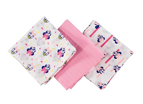 Mussole Disney Minnie Topolino Neonato Ellepi Morbido Cotone Organico Bambini Asciugamani Copertine Lenzuolini Swaddle Panni Telo Fasciatoio Allattamento Culla 70x70 Cm Confezione Regalo (Minnie)