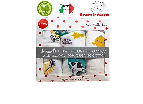 Mussole Neonato 115x115 100% Cotone Organico Asciugamano Neonati In Omaggio 1 Bavetta Bambini Design Italiano Idee Regalo Natale 2019 Nuova Collezione Lenzuola Per Carrozzina Asciugamani Piccoli