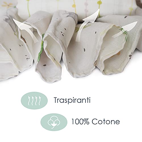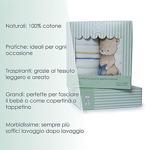Mussole Neonato Made in Italy, Copertine 100% Cotone, Teli in Morbida Mussola Premium Quality, Coperta Leggera per Swaddle, Carrozzina e Allattamento di The Bearhut (Favole)