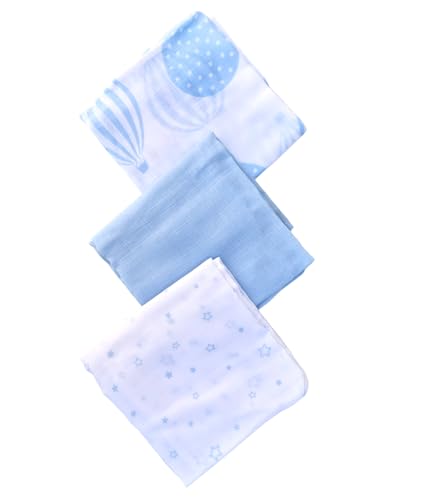 Mussole neonato neonati cotone nascita neonata mussola bamboo femmina ospedale regalo fasciatoio asciugamani regali corredino set bagnetto asciugamano teli traversine cambio telo quadrotti (Azzurro)