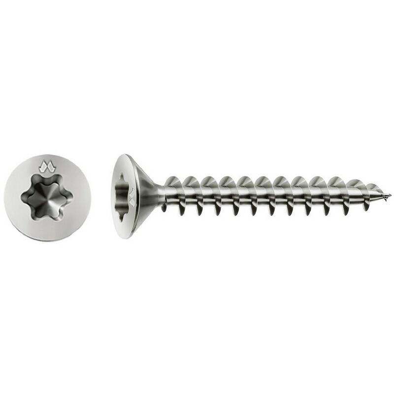 In acciaio con trattamento di carbonitrurazione antiruggine chromiting. totalmente filettata. a norme din 7505, testa svasata piana cava esalobata. avvitamento diretto senza preforo. le pareti verticali della cava esalobata consentono di trasmettere inter