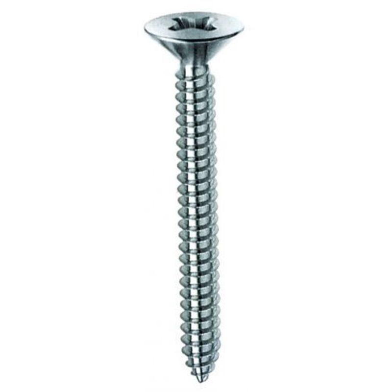 In acciaio cementato e zincato. Taglio a croce. Testa svasata piana. Diametro 2.2 mm Lunghezza 6.5 mm