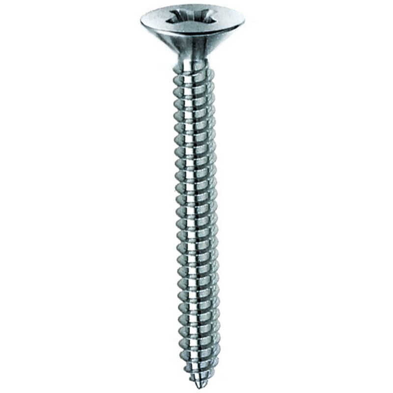 In acciaio cementato e zincato. Taglio a croce. Testa svasata piana. Diametro 4.8 mm Lunghezza 32 mm