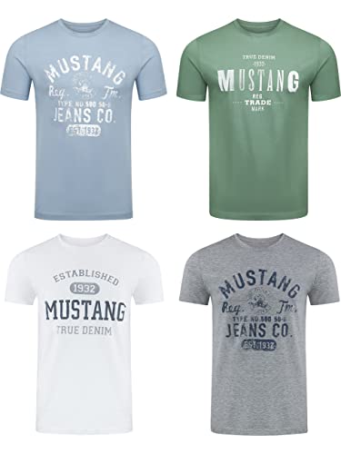 MUSTANG Maglietta da Uomo, Confezione da 4 Pezzi, con Stampa Frontale, Scollo Rotondo, a Maniche Corte, vestibilità Normale, 100% Cotone, Mix di Colori (P22), S