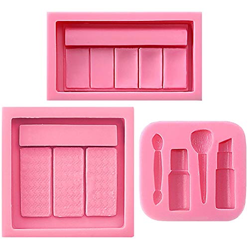Musykrafties Make-Up Tools Fondant Candy Silicone Mould, Eye Shadow, Blusher Palette, Lipstick 3-Piece Set for Fondant Cake Decoration, Cupcake Topper, Polymer Clay, Crafting, Resin Epoxy
