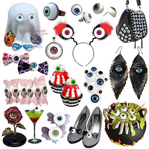 Stampo trasparente per palline oculari della bambola, creazione di gioielli con palla oculare, clip per capelli con fiocco per bulbo oculare, anello gotico per bulbo oculare zomalto, decorazione per torta di bulbo oculare di Halloween, decorazione per cupcake, mini biscotti, fermacarte spaventoso e molto altro ancora