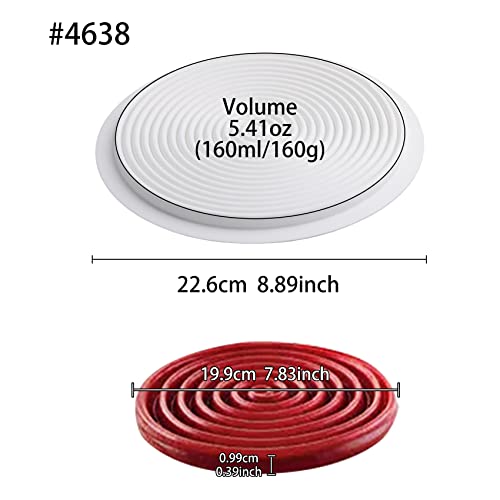 3D spirale cerchio forma bakeware, 1 cavità grande muffa: diametro 22,6 cm (8,9 pollici) altezza 1 cm (0,4 pollici), dimensione cavità: diametro 22,3 cm (8,8 pollici) altezza 1 cm (0,4 pollici), capacità: 2/3 tazza (160 ml/160 g/5,4 oz)