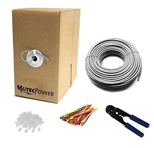 MutecPower 300M CAT5E 24 AWG solido FTP Cavo di rete Ethernet - Con pinza per crimpatura - 350 Mhz Grigio 300 Meter