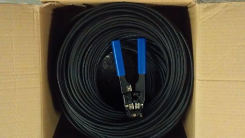 CAVO DI RETE PER USO ESTERNO: 300 metri cavo UTP (Unshielded Twisted Pair = Cavo non schermato) 24 AWG da uso esteriore ad alte prestazioni Cat5 CCA (Copper Clad Aluminium) cavo patch con diametro esterno trasversale 6.2mm - connettore libero per la personalizzazione completa e Pacchetto Include Crimp strumento, confezione da 100 fascette, confezione da 50 connettori RJ45 allentati.