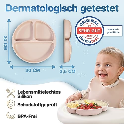 MUTKIND Piatto per bambini con ventosa - (dermatologicamente testato) piatto per bambini con ventosa - per neonati e bambini - 100% senza BPA - Piatto per bambini di qualità alimentare (3 pezzi)