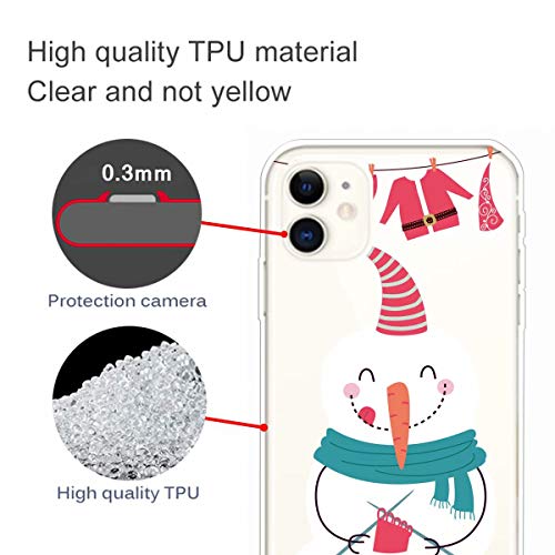 MUTOUREN Natale Cover iPhone 11 2019, Custodia Silicone Gel TPU Trasparente Ultra Sottile Telefono Caso Antiurto Protettiva Case, Pupazzo di Neve Calzino