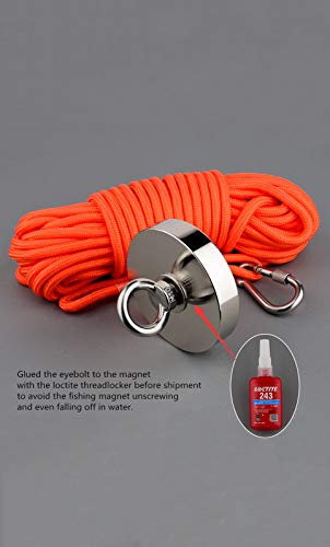 MUTUACTOR Neodimio Forza magnetica magnetica verticale Forza magnetica Magnete 500KG fisso con magnete da pesca corda 15m per caccia al tesoro in acqua