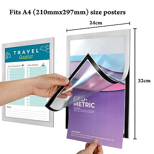 Mutualsign A4 Cornice Magnetica Autoadesiva per Espositore, Magnetic Cornice per Display su Superfici Lisce e Solide, Cambio Rapido, Confezione da 6, Argento