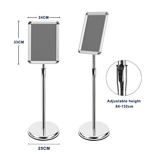 Regolabile: la cornice del poster può essere ruotata di 360 gradi e può essere utilizzata verticalmente e orizzontalmente. L'altezza può essere regolata tra 84 cm e 132 cm.