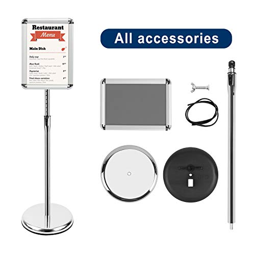 Robusto e stabile: il materiale del telaio del poster è in alluminio e il materiale del palo del supporto è in acciaio inossidabile. Inoltre, puoi aggiungere acqua e sabbia nella base in gomma per aumentare la stabilità.