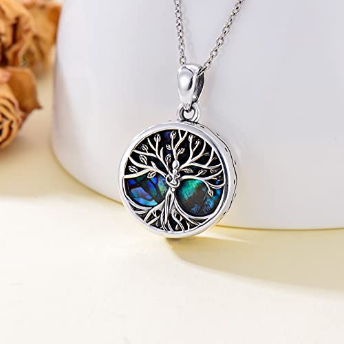 MUUYON Collana con urna albero della vita per ceneri in argento sterling conchiglia di abalone con ciondolo commemorativo in cenere per le donne