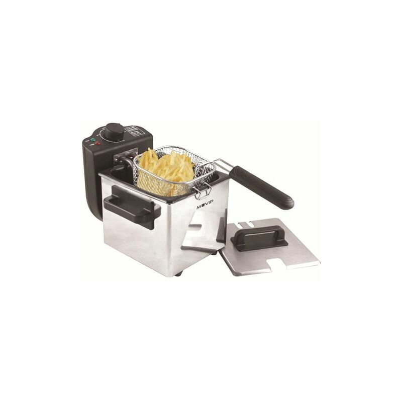 Muvip Friggitrice 1,5L 1000W Caratteristiche. -Selettore di temperatura. -Maniglie a contatto con il freddo. Rivestimento antiaderente. -Facile da pulire. -Completamente smontabile. Specifiche: -Potenza: 1000W -Capacità: 1,5 litri -Corpo in acciaio inossidabile -Coperchio per la conservazione -Indicatore LED