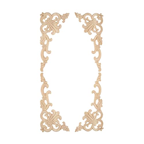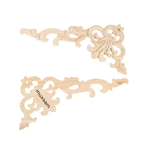 MUXSAM 2 modanature in legno intagliato ad angolo destro e sinistro (1 pezzo ciascuno), decorazione per porte in stile europeo, non verniciate