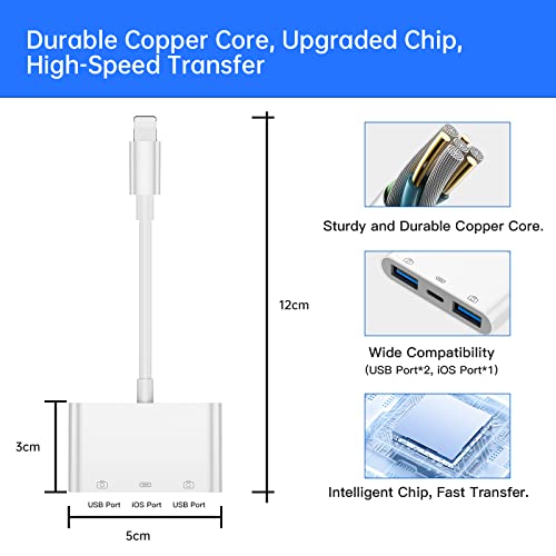 ✔ Trasferimenti ad alta velocità senza sforzo con l'adattatore USB 3.0 3-in-1 per iPhone: Non è necessario utilizzare app aggiuntive. L'adattatore usb light-ning per iphone e ipad consente di effettuare trasferimenti dati veloci. Puoi facilmente trasferire foto, file e video dalla chiavetta USB, dal lettore di schede o dalla fotocamera al tuo iphone o ipad. Semplifica il tuo flusso di lavoro e risparmia prezioso tempo con questa soluzione tutto-in-uno.