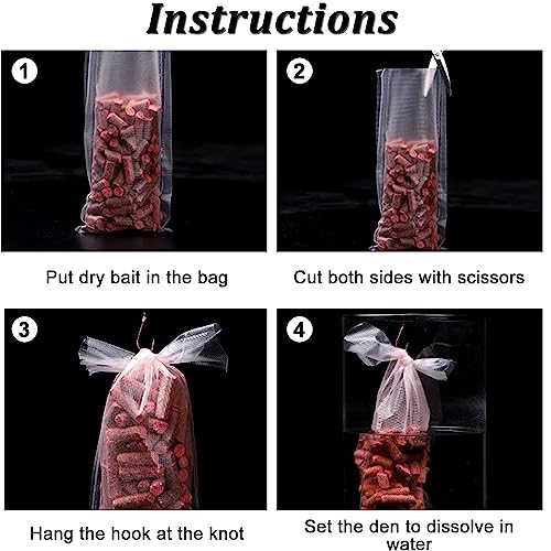 Processo di trappiing: 1. Riempire con esche, 2. Gettare in acqua, 3. Il sacchetto decade, 4. Rilasciare esche. Con questo sacchetto in PVA da pesca il materiale di nidificazione sarà concentrato e i pesci saranno più concentrati, i sacchetti solubili in acqua vi aiuteranno a conservare le esche in modo da poter catturare di più.