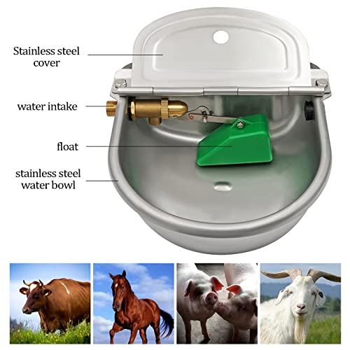 VALVOLA FLOTTANTE: l'abbeveratoio per bovini è dotato di una valvola a sfera galleggiante da 1/2 pollici, che mantiene un livello dell'acqua costante nel vassoio dell'acqua, aggiungere acqua automaticamente, garantire che la fonte d'acqua sia pulita e migliorare l'efficienza della coltivazione.
