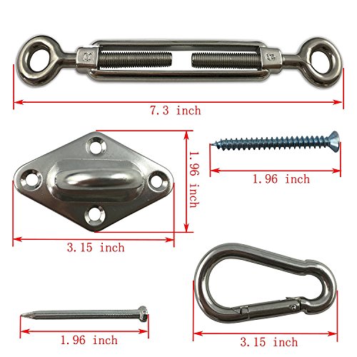 Muzata, Kit di assemblaggio completo e resistente per tenda parasole triangolare da 20,3 cm, in acciaio inox 316