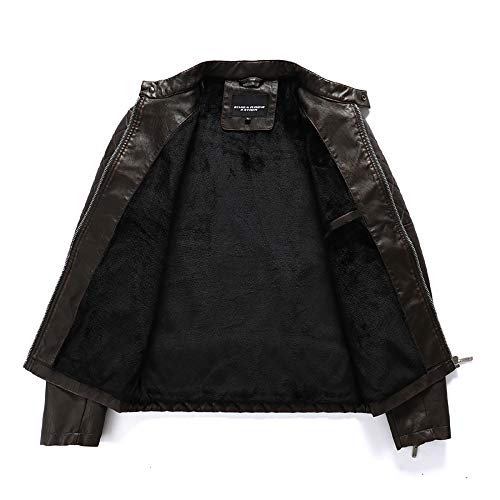 Muzboo Giacca da uomo in pelle con colletto e supporto per moto, classica giacca invernale in ecopelle, marrone scuro