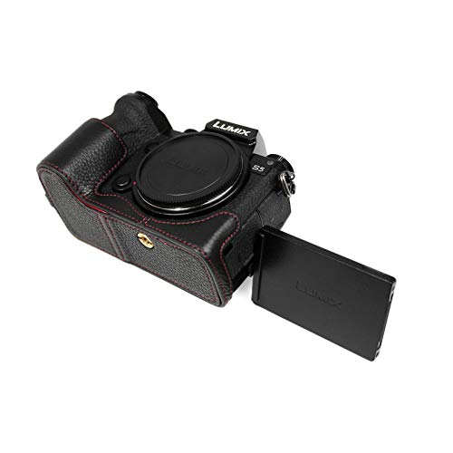 MUZIRI KINOKOO Custodia Protettiva Compatibile con Panasonic Lumix DC-S5/S5 II /S5 Mark II Fotocamera - Bottom Custodia in Pelle Genuino - Nero