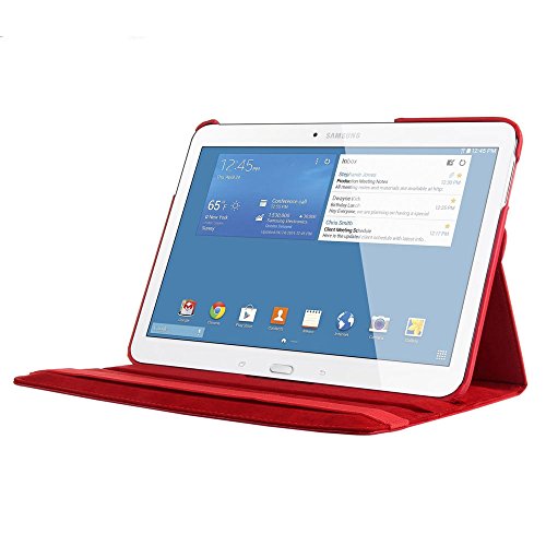 MUZZANO-Custodia a libro "Le Folio Rotatif" rosso per SAMSUNG GALAXY TAB 4 10,1 (coccodrillo, protezione anti-urto, ELEGANTE e resistente, 3 pellicole proteggi schermo trasparenti, trasparenti, pennino e panno pulente inclusi