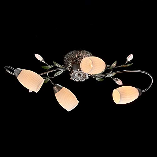 MW-Light 334013504 Plafoniera da Soffitto a Fiori in Metallo di Colore Nero Argento Paralumi di Vetro 4 x 60W E14