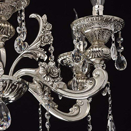 MW-LIGHT 482015606 Lampadario da Soffitto Grande Metallo Colore Argento Nero Vetro Trasparente Gocce di Cristallo 6 x 40W E14