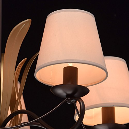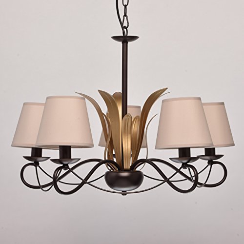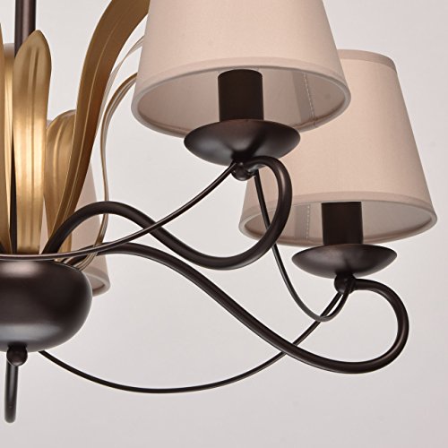 MW-Light 689010105 Lampadario Pendente Rustico in Metallo Colore Caffe Oro Paralume in Stoffa Beige Stile Classico 5 x 60W E14 Escl