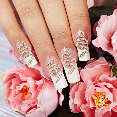 Design chic: Delicato design con charm per nail art a forma di serpente, tempestato di strass che li fanno brillare sotto la luce, che può aggiungere fascino e colore alle tue unghie.