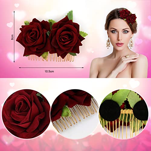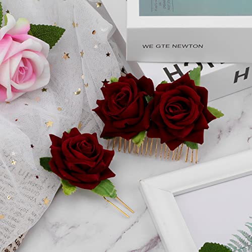 Copricapo con rose rosse: il pacchetto contiene 2 pezzi di forcina in una rosa singola e 2 pezzi di pettine per capelli in rose doppie, diversi stili di questa combinazione soddisferanno molteplici esigenze nel tuo processo di styling quotidiano;