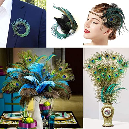 MWOOT 40 Pezzi Piume di Pavone Decorative, Piume Naturali Verdi, Piume DIY Carnevale Partito Costume da Mascherata Accessori per Capelli Vintage Decorazione, 20-25CM Piume Decorative Lunghe