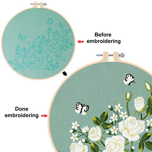 MWOOT Ricamo Starter Kit Punto Croce,Set di Telaio Ricamo Filo da Ricamo e Aghi Fai-da-Te per Principiante (Rosa Bianca 1)